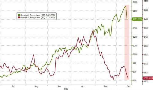 而这场抛售由两记重拳引燃。华尔街见闻写道,首先,“谷歌链”核心标的——博通在上周公布了财报,尽管销售额创下历史新高,但其对AI业务的收入预测未能满足华尔街的极高期望。