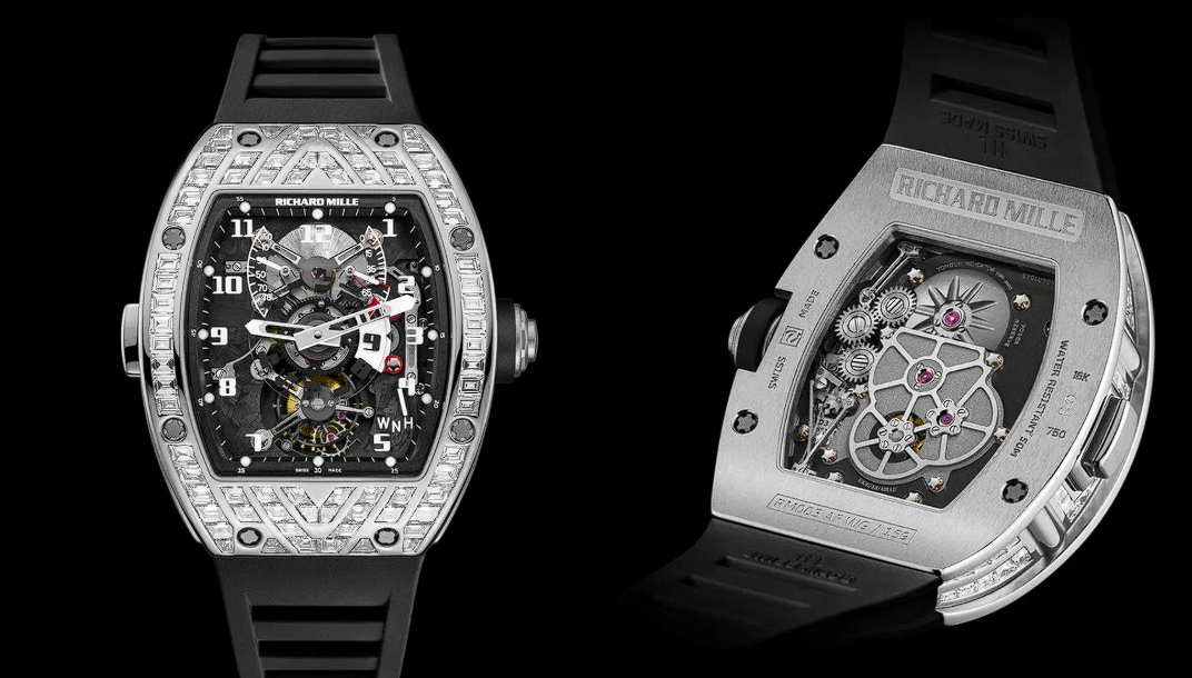 资料显示,这是腕表是理查德·米勒专为亚洲市场打造的超稀缺时计,其采用黑色碳纤维表壳+镂空表盘设计,将复杂机芯结构完全呈现。