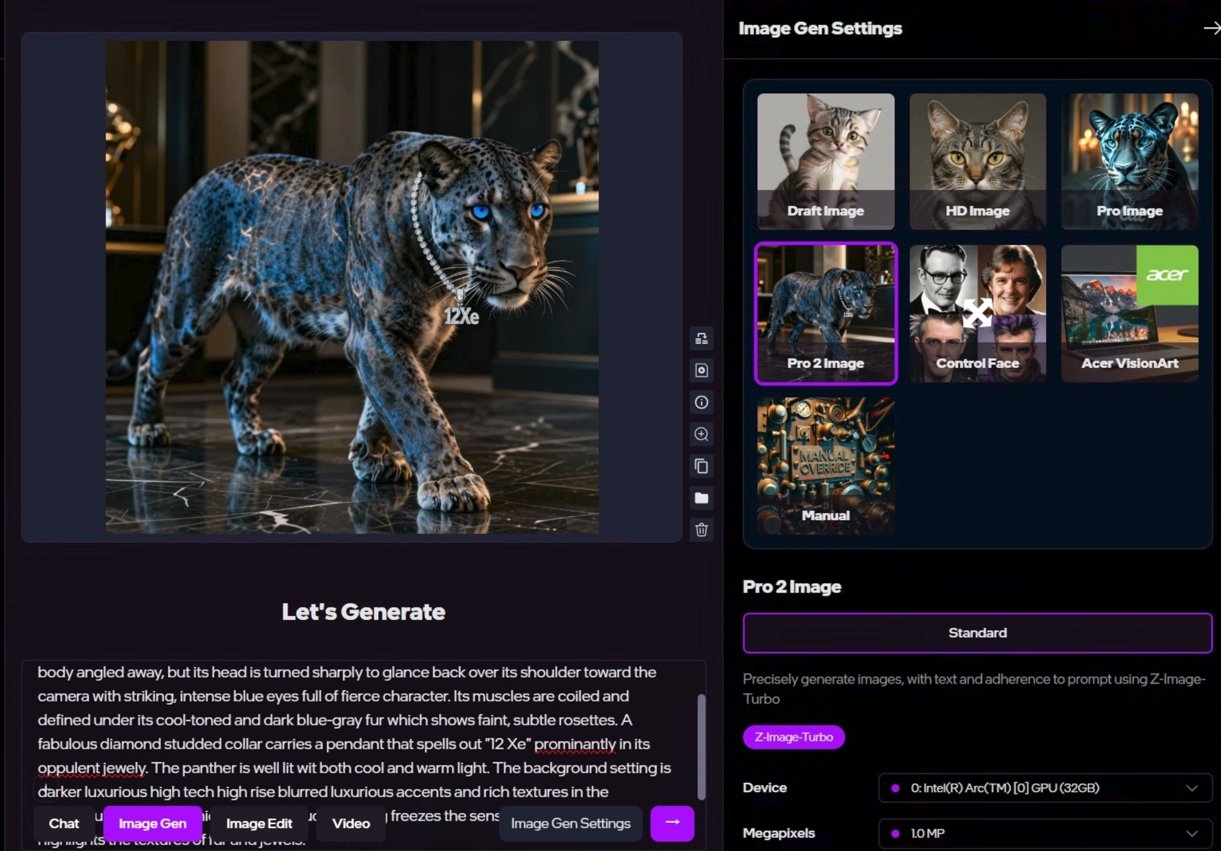 指南中的一张AI生成图像示例,由一款未命名的锐炫显卡生成,其配置信息明确标注了32GB显存。