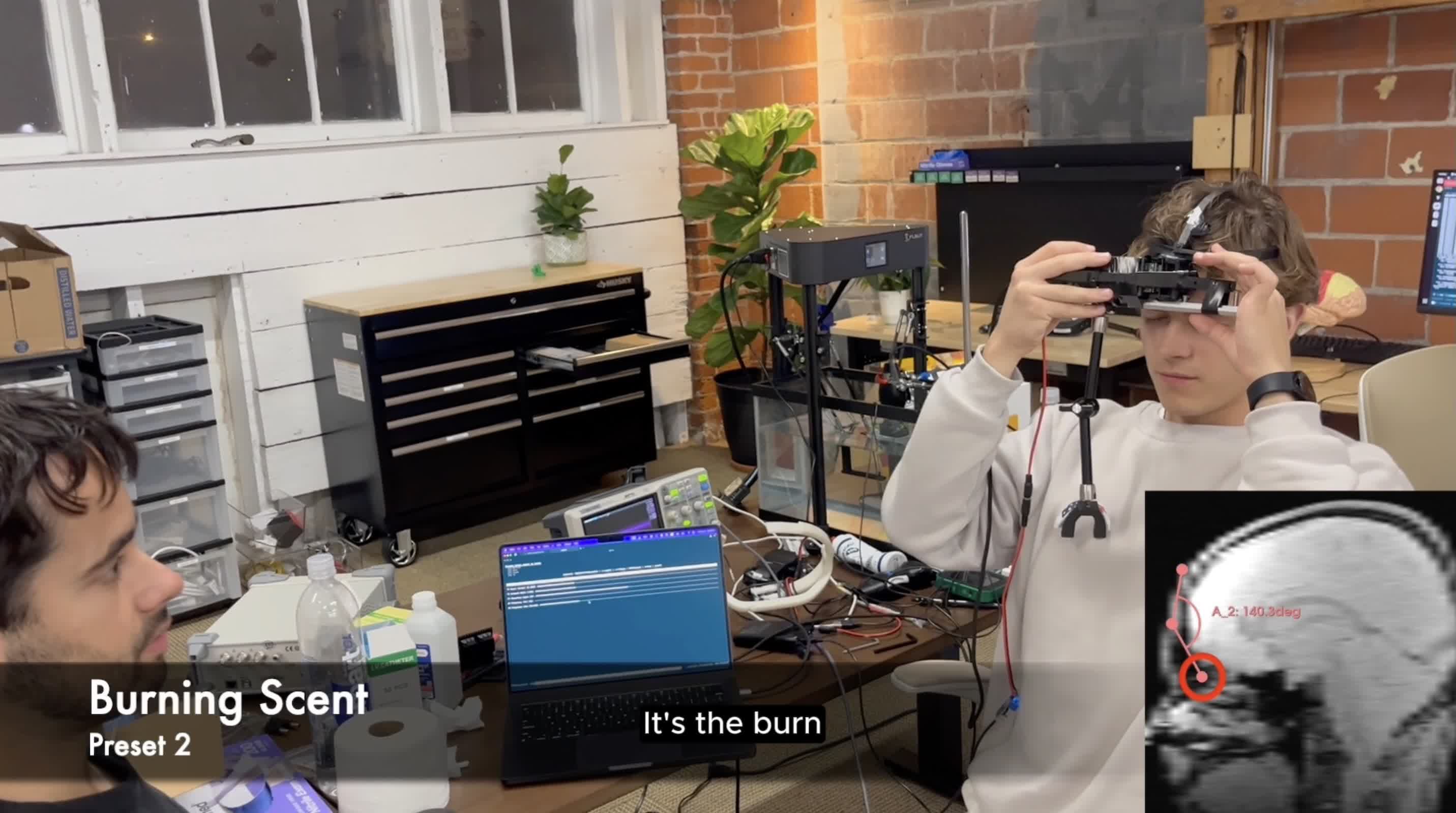 从工程角度看,这仍是一台早期原型机:装置形式勉强可以算作“头戴式”,但目前必须由手来固定在额头上。若要实现实际应用,设备需要进一步小型化,并与VR/AR头显等可穿戴硬件深度集成,以满足长期佩戴、移动使用和安全性的要求。