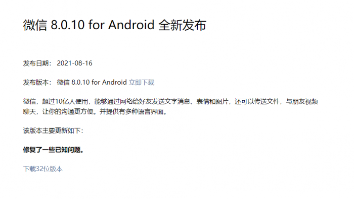 今日,微信官方发布8.0.10安卓正式版更新,与iOS相比晚了10天左右。虽然微信官方的更新日志只显示“解决了一些已知问题”,但经过网友反馈和测试,此次正式版还新增了几项新功能。据了解,在微信8.0.10安卓正式版中,置顶对话框支持折叠,订阅号页面的直播中也支持折叠和展开。
