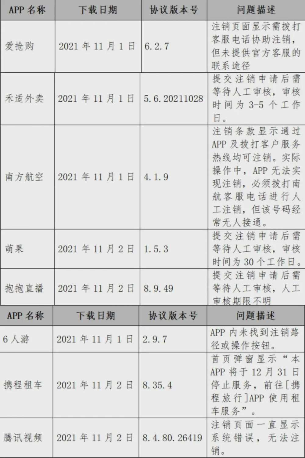 让用户更糟心的情况如人工审核无人受理、无法通过APP直接注销也出现在中消协的报告中,有网友看到名单表示:这只是冰山一角。
