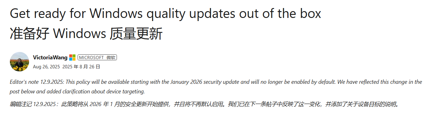 为此,微软在2025年2月引入了新的组策略和 Intune(MDM)策略,允许管理员根据设备的准备情况和自身需求来灵活部署这些OOBE更新,而非强制执行。
