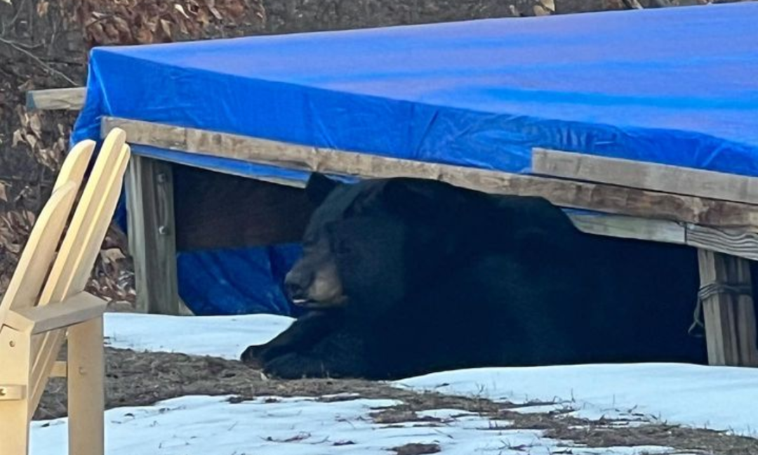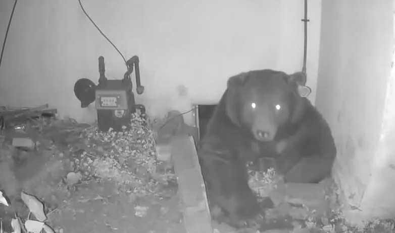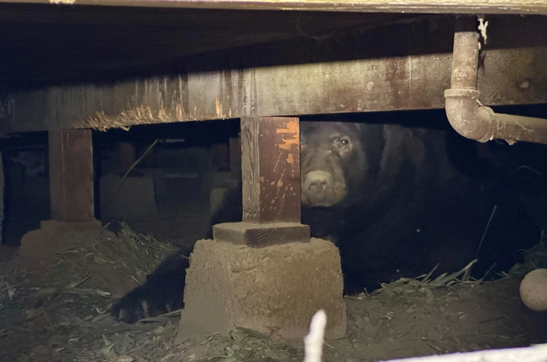 一只体型硕大的黑熊,正熟练地将自己像液体一样挤进他家地基下的爬行空间里。