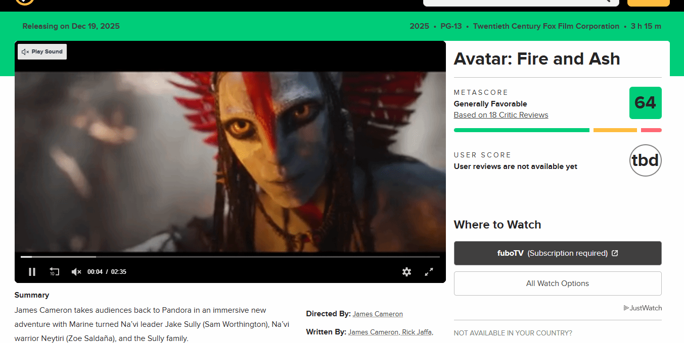 《阿凡达3》口碑已开!烂番茄新鲜度68%,均分6.4!不及第一部《阿凡达》81%新鲜度、7.8均分以及《阿凡达2》76%新鲜度、7.1均分。MetaCritic开分64,不及第一部的83及前作《阿凡达2》的67分。口碑优缺点都非常明显,放低期待,或许还能有惊喜。
