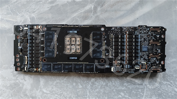 正反面各有12颗GDDR6X显存,共计24颗,组成384-bit 48GB,带宽超过了1TB/s。