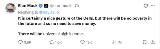 马斯克是在回复桥水基金创始人、投资大师雷·达里奥的帖子时作出这一表态的。达里奥在X帖中宣布,他将跟随迈克尔和苏珊·戴尔夫妇,为 “特朗普账户” 捐赠启动资金。