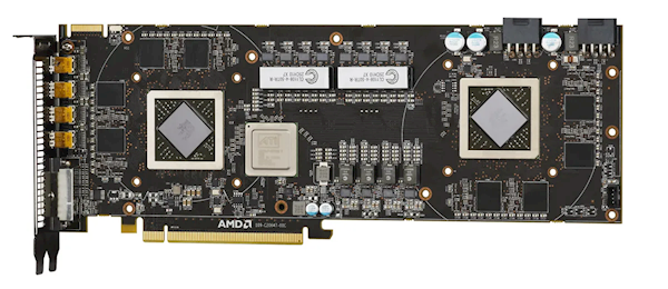 HD 6990将两颗完整的40nm工艺Cayman XT GPU集成在单块PCB上,通过CrossFireX技术互联,本质是两张略有降频的HD 6970合体。