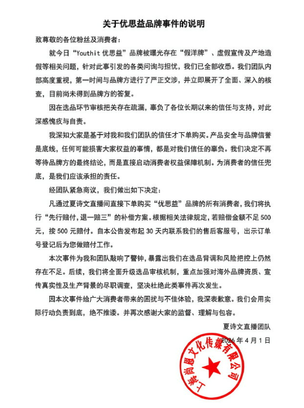 近日,央视新闻曝光了“澳洲优思益”叶黄素保健品的造假链条。该产品号称澳洲进口,实际由国内企业生产并从广州保税仓发货,营销公司承认包装成“假洋牌”并雇佣外籍专家虚假背书。章小蕙、李若彤、明道等多位明星曾大力直播带货。事件曝光后,他们迅速发布正式致歉声明,承认选品审核失职,辜负消费者信任。