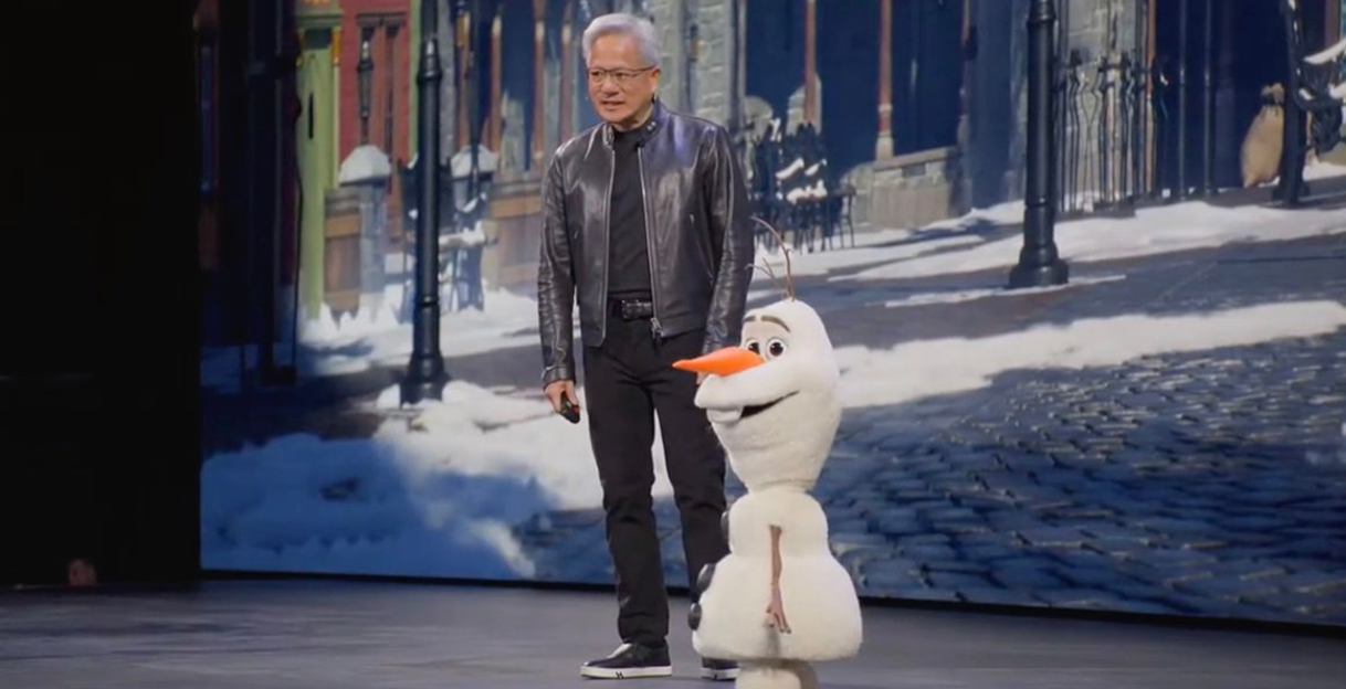 今年3月,英伟达CEO黄仁勋(Jensen Huang)展示了一个机器人版的雪宝,后者是电影《冰雪奇缘》中的雪人。机器人雪宝将三家美国最知名公司结合在一起:英伟达和谷歌提供AI技术,为这个迪士尼角色赋予“生命”。