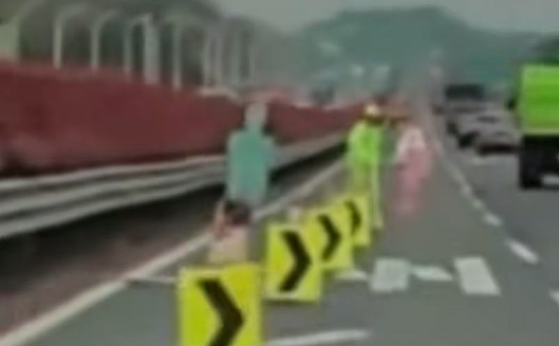 行车记录仪显示,车辆在撞击过程中未见明显减速,车速仅微降至87km/h时,与路侧一名施工人员擦身而过,该人员迅速翻越护栏避险,事故未造成人员伤亡。