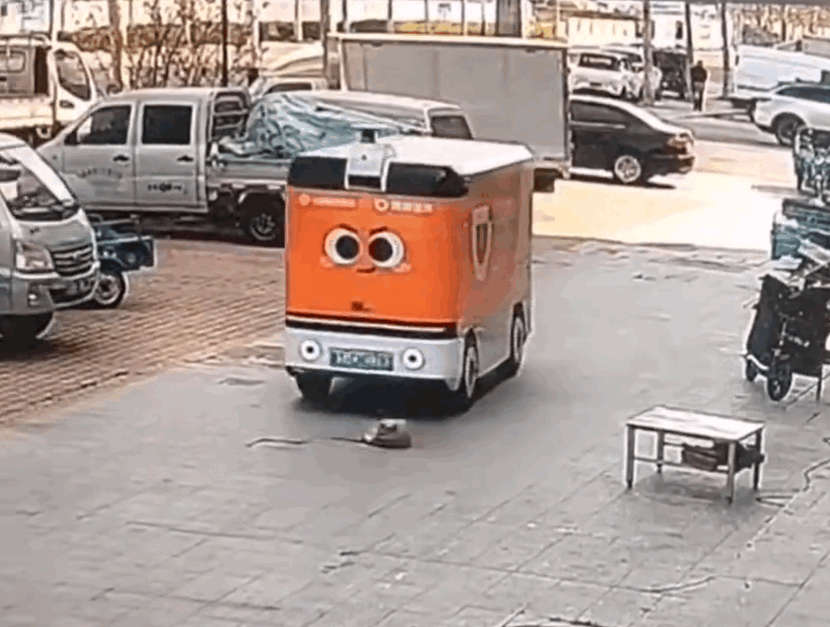 日前,网友发布的监控视频显示,小狗在家门口的路上睡觉,后方驶过来一辆无人快递车。无人车未识别到小狗,径直从其身上碾压过去,小狗被压过后疼的原地打转嚎叫,随后倒地不起。