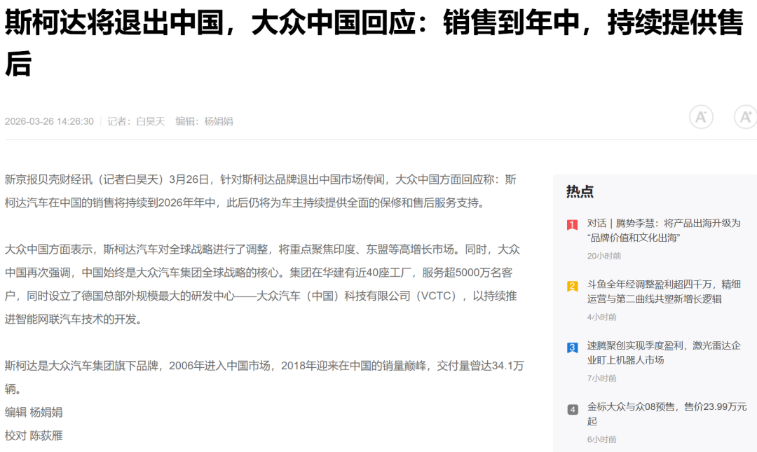 “懂大众的都买斯柯达”,曾经是大众平替的斯柯达,拖了几年终于是寄了。前几天有媒体爆料斯柯达即将退出中国,没多久,母公司大众自己就出来回应了:“斯柯达汽车在中国的销售将持续到 2026 年年中,此后仍将为车主提供全面的保修和售后服务支持。”