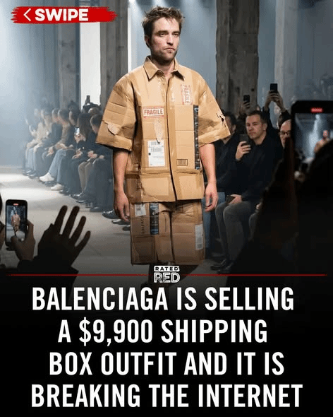从视觉冲击力来说,这套“快递箱装”确实极具话题性,Balenciaga近年来一直擅长用这种“看似荒谬”的设计制造社交媒体的讨论热度。但从实际穿着体验来看,恐怕就不那么美妙了。