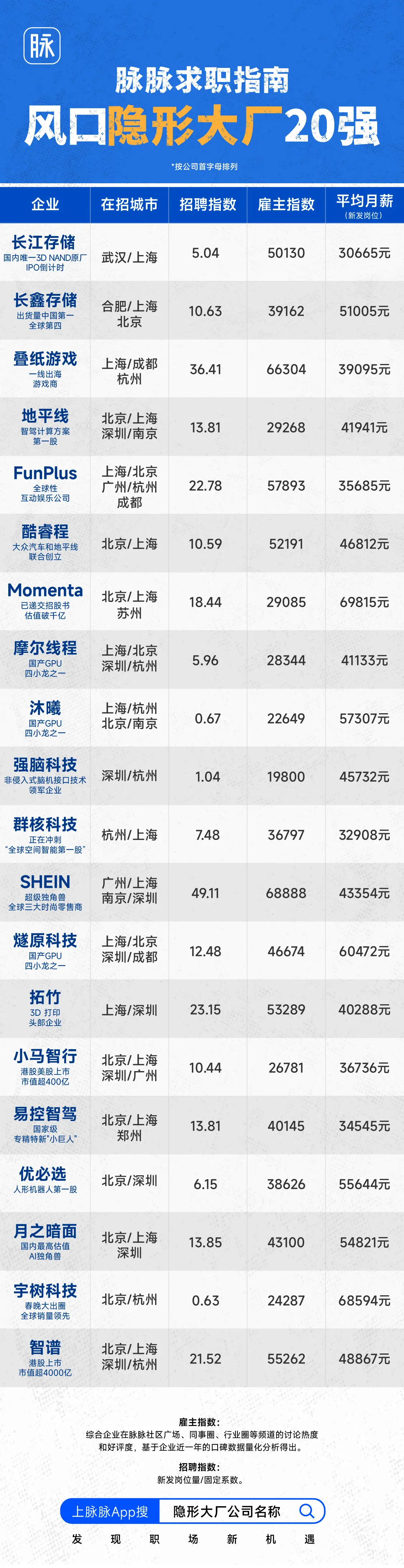 脉脉发布80家“隐形大厂”名单 平均月薪最高近7万
