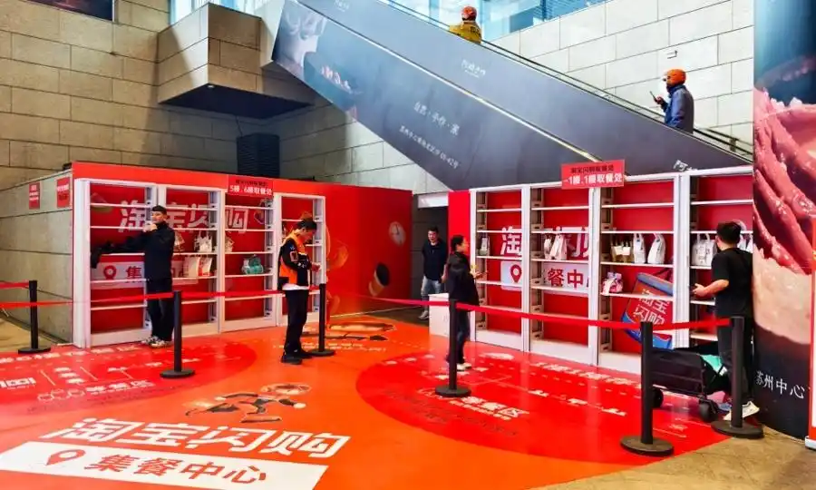 商场内部骑士专人专区,使用静音购物车循环发车;商场外部的骑士到场后可即取即走。