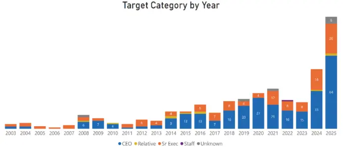 图注:2003-2025大企业高管及其家人被罪犯针对的比例图