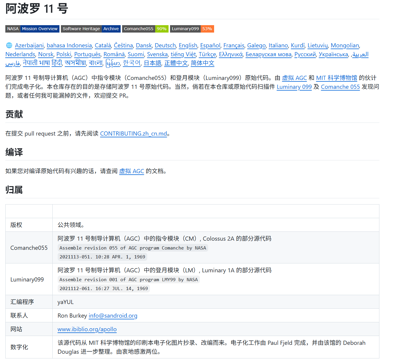 这些代码由虚拟阿波罗制导计算机项目(Virtual AGC)团队与麻省理工学院(MIT)博物馆合作完成的数字化处理,都是从印刷本电子化图片抄录、改编而来的。
