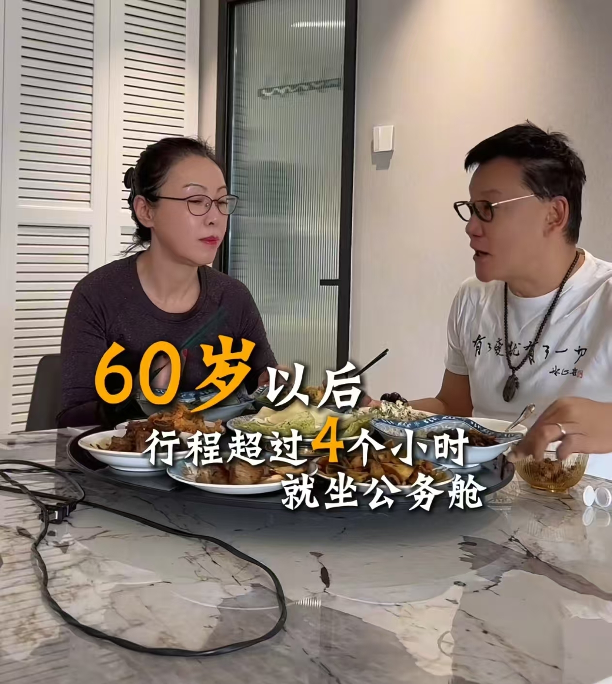而关于旅行的事情他们俩早就商量好了:到60岁以后,坐飞机超过4小时就得坐公务舱。