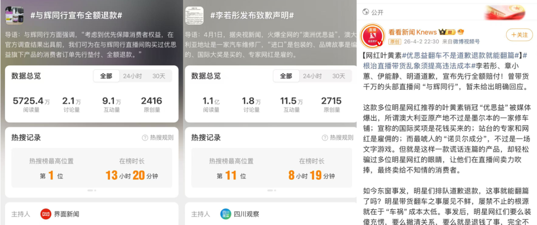 目前来说,优思益的抖音、天猫等官方旗舰店全线停业,各路明星、网红、大V 宣布道歉并公布对应的赔付政策。
