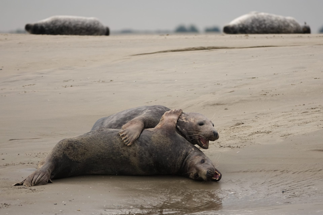 灰海豹本身就有同类相食的现象,作风比较“狠辣”。在英国,它和真海豚的栖息地有重合,而且两者数量都挺可观的(这一点被认为是起冲突的原因之一)。