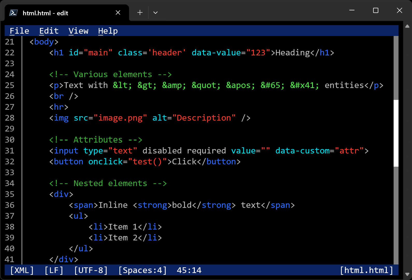 微软去年开源的命令行文本编辑器Edit迎来2.0.0版本更新,新增语法高亮功能,Linux版体积仅294KB。Edit 2.0最大的变化是加入了语法高亮支持,涵盖纯文本、Diff、GitHub Commit/Rebase、Ignore、JavaScript、JSON、LSH、Markdown、PowerShell、Properties、Python、Shell、Script、XML和YAML等多种语言,并支持自动识别。